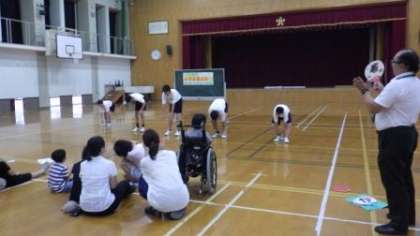 二条中学校・正親小学校・二条城北小学校の育成学級交流会をしました。二条中の生徒の皆さんを中心に,楽しく活動しました。二条中の生徒の皆さんがダンスを発表したり,みんなでフルーツバスケットを楽しんだりしました。