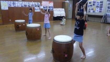 今日は,1・3・4年生が太鼓の練習をしています。