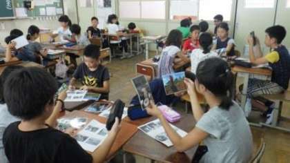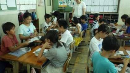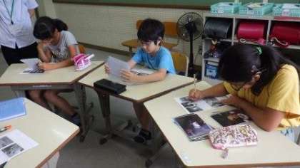今日は,エチオピアに住む少女の写真を使って学習しました。何をしている写真か予想したり,水について困っていることについて考えたりしました。