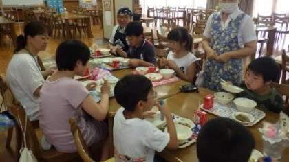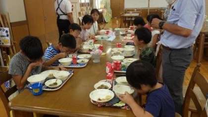 今日は,わかたけ学級がランチルームで給食を食べました。