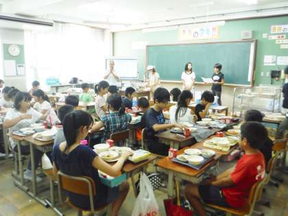 「いつもおいしい給食を作ってくださってありがとうございます。今日の給食は,すまし汁はとうふやしいたけにだし汁がしみこんでいておいしかったです。また,ふしみとうがらしのおかかには,少しにがかったけれど,ちくわやこんにゃくと食べるとすごくおいしかったです。ごちそうさまでした。」(6年児童)