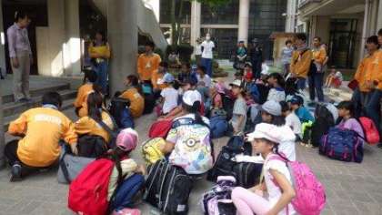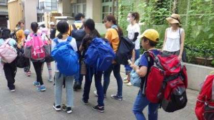 地域の少年補導の皆様や学生の皆様にお世話になり,子どもたちがキャンプをします。朝9時に集合し,静原へ向けて出発しました。楽しく活動して,たくさんの思い出をつくってほしいと思います。