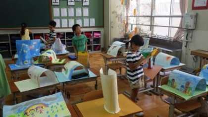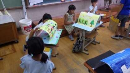 23日(月)3年図画工作「立ち上がった絵の世界」