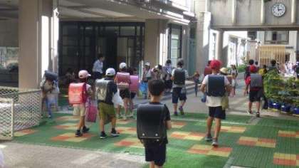 明日から夏休みになります。学校では明日から,サマースクールや水泳教室,各部活動などを予定しています。明日からの活動においても,気象情報に注意しながら熱中症対策を考えていきたいと思います。活動を中止する場合は,南門へのはり紙・PTAメール配信・学校ホームページでお知らせします。