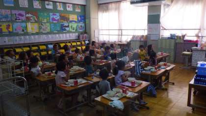本日は給食終了日です。子どもたちは,クラスのみんなとしばらく一緒に給食を味わうことができないので,味わって食べている様子でした。また,いつも以上に大きな声で「ごちそうさま。」と給食室に声をかけてくれました。