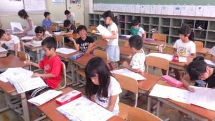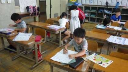PTAラジオ体操の後,各教室でサマースクールを行いました。たくさんの子どもたちが参加し,夏休みの宿題などに取り組みました。