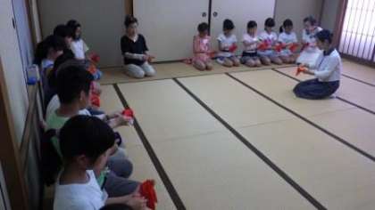 夏休みの茶道部のおけいこをしました。地域の先生方に作法を教わっています。