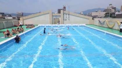午前中の水泳学習は,時間を短縮して行いました。また,熱中症対策として水分補給をしたり,プールサイドに常に水をまいたりしながら行いました。