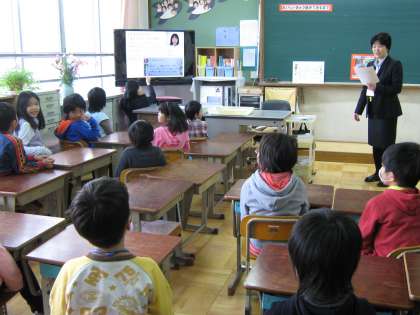 「たくさんの方の力でおいしい給食ができていることに気づき,感謝して食べようとする」ことを目標に授業を行いました。DVD「給食はてな〜こんだてのひみつ〜」をみたり,栄養教諭や給食調理員さんのおもいを知ったりしました。
