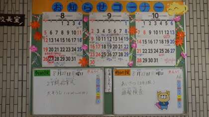 2学期の予定も書いていますので,ぜひ来校の際には見ていただけたらと思います。