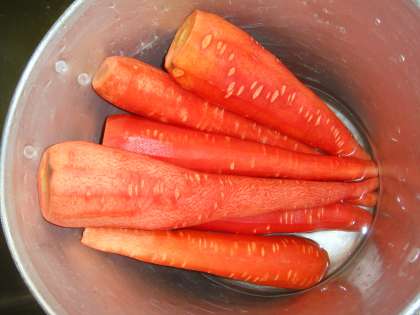 今日のにんじんは,色が赤く,やわらかい「金時にんじん」を使っています。