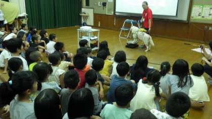 総合「伝え合う心」の学習で,関西盲導犬協会の久保さんを講師にお招きし,盲導犬についてのお話を聞きました。子どもたちは盲導犬を実際に見て,その賢さに驚いたようでした。