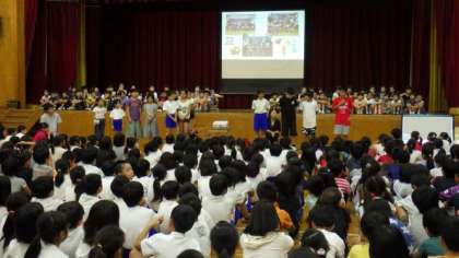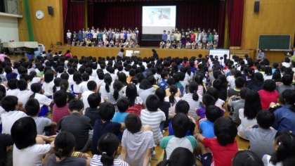 今日の朝会は,3年生が「マイ箸づくり」について発表しました。おはし作りを通して知ったことや考えたことを発表しました。また,本校でつくった「きゅうしょくのうた」も元気に歌いました。発表の後には,たくさんの子どもたちが感想を話しました。