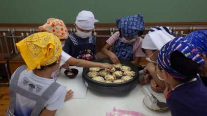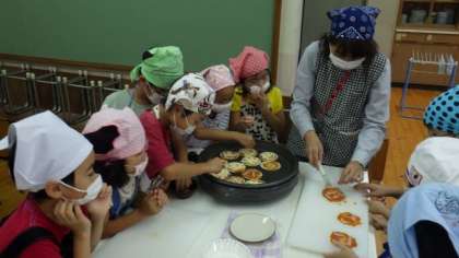 今日の5時間目は,2年2組がトマトピザの調理実習をしました。自分で具材をのせたピザが焼きあがるのを楽しみにしながら,片付けもすすんでしていました。