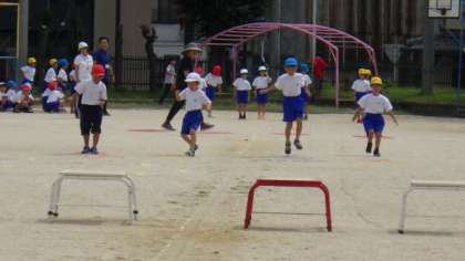 今日は障害物走の練習をしました。フラフープやケンステップを楽しんでいます。