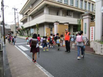 本日は,スクールガードリーダーの方が巡回に来てくださり,児童の登校を見守っていただきました。子どもたちのあいさつの声も普段より大きく聞こえました。