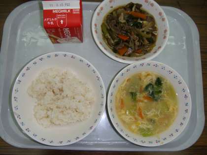 今日の献立は,「麦ごはん・牛乳・プルコギ・中華コーンスープ」でした。