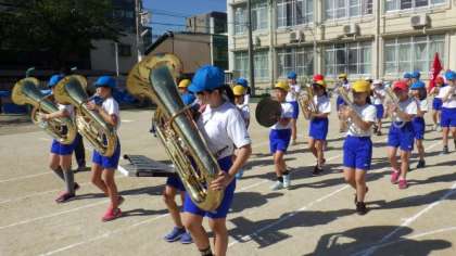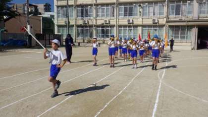 1・2時間目に,運動会の全校練習を行いました。今日は,入場行進・開閉会式・応援団席への入退場・玉入れ・リレー・わかたけ種目の練習をしました。