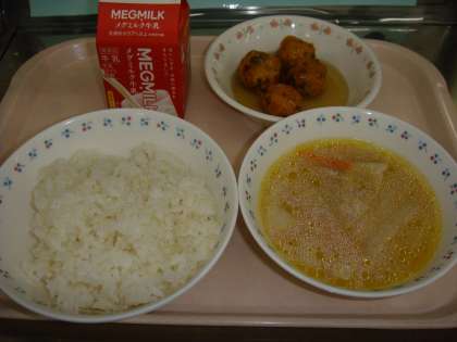 今日の献立は,「胚芽米ごはん・牛乳・がんもどきのあんかけ・豚汁」でした。
