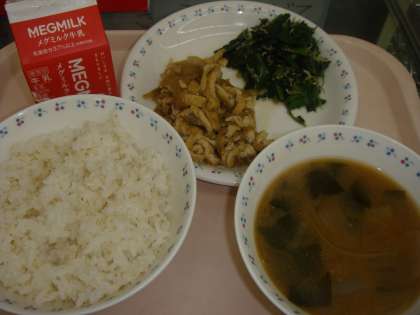 今日の献立は,「麦ごはん・牛乳・きつね丼の具・ほうれん草とじゃこのいためもの・みそ汁」でした。