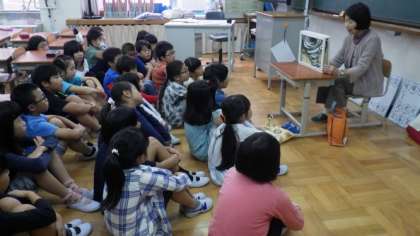 学校運営協議会読書活動部の皆様が,1〜3年生の教室で毎週水曜日に読み聞かせをしてくださっています。絵本以外にも紙芝居やペープサートなどで楽しくお話を聞かせていただき,子どもたちも毎週楽しんでいます。