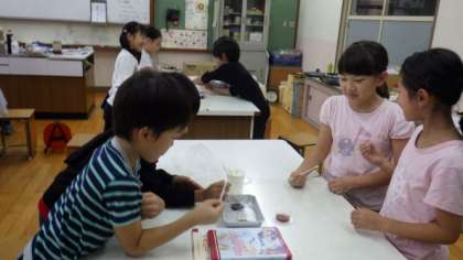 2・3・4時間目に,上京区の醤油専門店の方を講師にお招きし,醤油についての出前授業をしていただきました。発酵のことや,香りや味の違いについて教えていただきました。