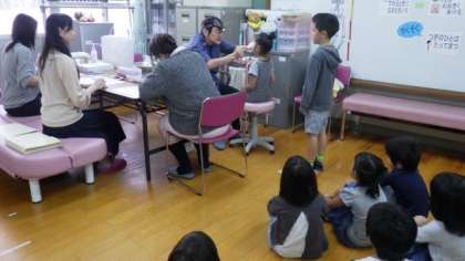 今日は,わかたけ学級・草の芽学級・1・3・6年生が歯科検診をしています。
