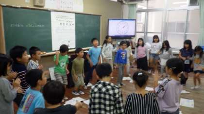 3年生は音楽で,リズムづくりの学習をしています。4年生は総合の学習で,みんながくらしやすい学校にするためのユニバーサルデザインを考えています。