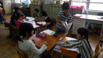 楽しい学級にするために,いろいろな係を作っています。今日は,係ごとに活動をしています。かざりを作ったり,楽しいクイズを考えたりと,友達と一緒に楽しく活動しています。