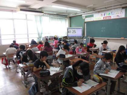 2時間目に5・6年生がジュニア京都検定にチャレンジしました。5年生は基礎コース,6年生は発展コースの問題に真剣に取り組んでいました。