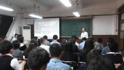 二条中学校区にある,二条中学校・正親小学校・二条城北小学校の3校の教職員が合同で研修会を実施しました。正親小学校の公開授業を見た後,講演を聞き,小中一貫教育や外国語活動について考えました。