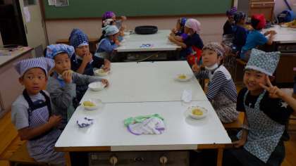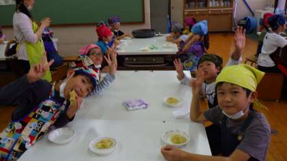 初めにさつま芋の栄養や育てたときの様子などをふり返りました。さつまいもが土の中で大きくなることを初めて知った児童もいました。野菜などを育てる機会が少ないので,みんなで畑でさつまいもの苗を植えて,収穫し,調理実習できたことが良かったと思いました。