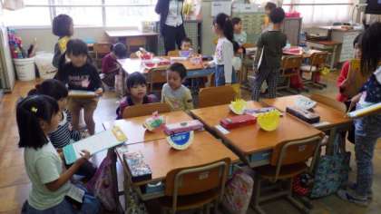 今日は,作品の鑑賞をしました。ワークシートに,自分の作品について工夫したことやがんばったことを書いたり,友達の作品をみていいなと思ったところを書いたりしました。
