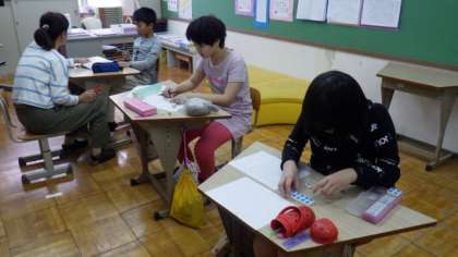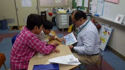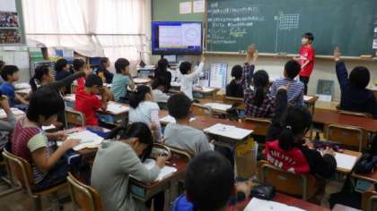 わかたけ学級は,算数の学習をしたり,読み聞かせを楽しんだりしています。4年生は算数の学習で,自分の考えを発表しています。