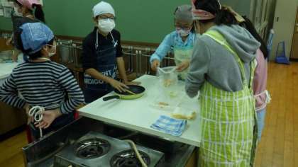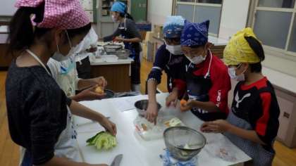 3・4時間目は6年2組が野菜炒めの調理実習をしています。分担を決めて,手際よく調理をしています。