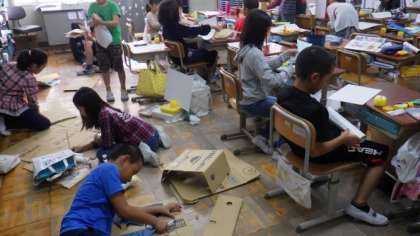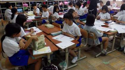 4年生は図画工作で,段ボールや画用紙などを使って,ビー玉を転がして遊ぶ楽しいコースづくりをしています。2年生は国語の物語文「お手紙」の学習で,作者の他の作品を読んで感想を交流しています。