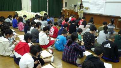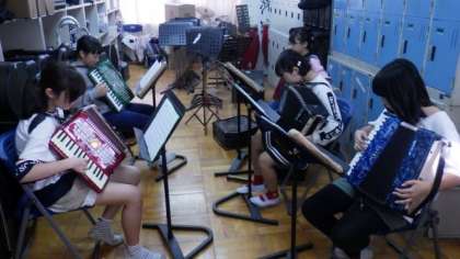 学習発表会に向けて,合奏の練習をしています。パートごとに分かれて練習しています。