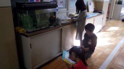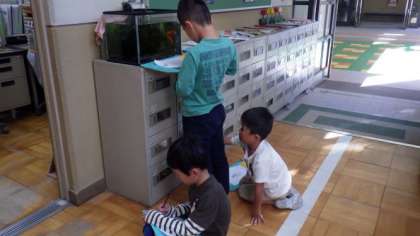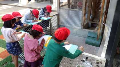 学校で飼育している金魚やウサギなどを,ワークシートにかいています。