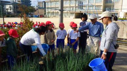 上鳥羽で農家をされている村田さんにお世話になりました。児童は,ねぎが折れないように丁寧に草抜きをして,土を寄せて,肥料をやりました。農家の方のお話を熱心に聞いていました。