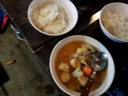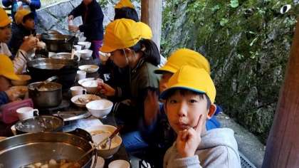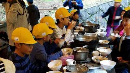 「とりすき焼き風煮」が完成しました。できあがった班から「いただきます。」をして食べています。