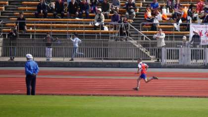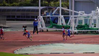 西京極陸上競技場で行われているリレーカーニバルに,6年生が地域のチームの一員として出場しました。