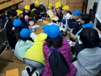 2日目の山の家での活動のふり返りを各班でしました。リーダーがまとめを発表しました。