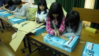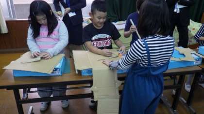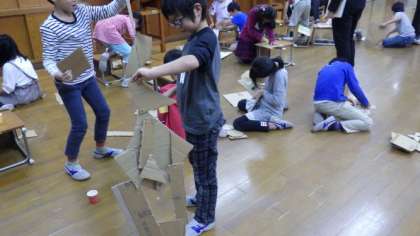 7日(水)3年図画工作「切ってつないで大へんしん」