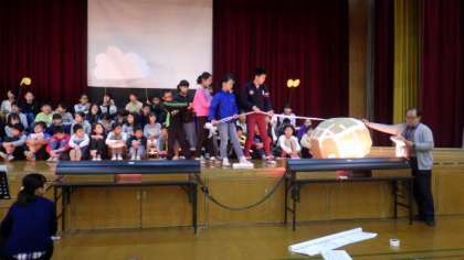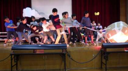 5年生は学習発表会で,英語劇を発表します。これまで外国語活動で使った英語の表現を使って,“The Giant Turnip(大きなかぶ)”の劇を練習しています。