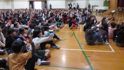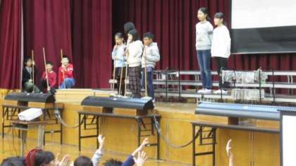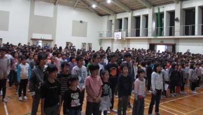 環境委員会が掃除の工夫について,クイズで楽しく紹介しました。最後に,学習発表会の全校合唱の練習をしました。
