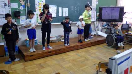 わかたけ学級は音楽で,ハンドベルの練習をしています。6年生は理科の「てこのはたらき」の学習を活かしたモビール作りをしています。