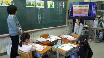 1年草の芽学級は道徳で,「にんじんばたけで」というお話を読んで,良いことと悪いことの区別をして,良いことをすすんで行おうと話し合っています。4年草の芽学級は社会で,琵琶湖疏水について学習しています。