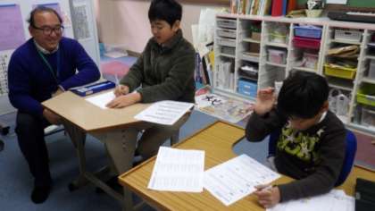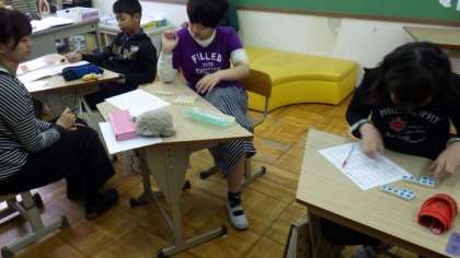 ワークシートやドリルを使いながら,算数の学習をしています。