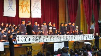春夏秋冬の詩の群読や,京都の通り名の歌などを発表しました。