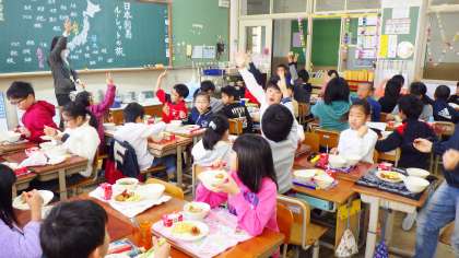 「ヒレカツがおいしかったので,がくしゅうはっぴょうかいががんばれそうです。」(4年児童)